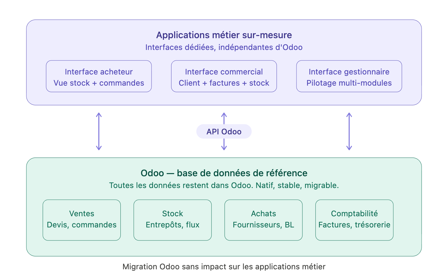 Le principe : Odoo comme référentiel, l'interface adaptée au métier